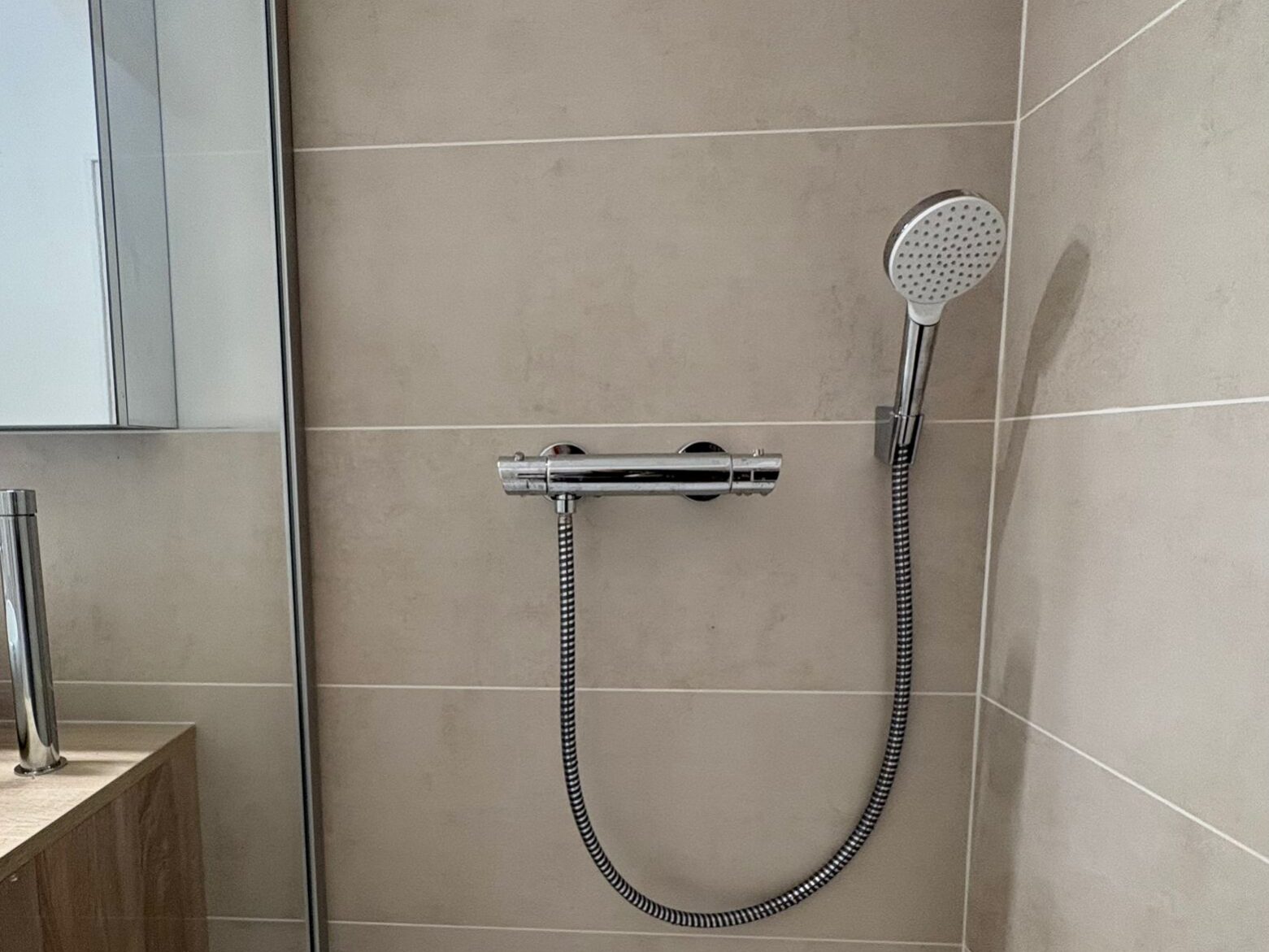 Nos experts ont installé une vaste cabine de douche équipée d’un receveur extraplat, agrémentée de niches carrelées élégamment intégrées dans les parois. Fonctionnelles et hygiéniques, ces niches assurent un rangement optimal et un entretien facilité.